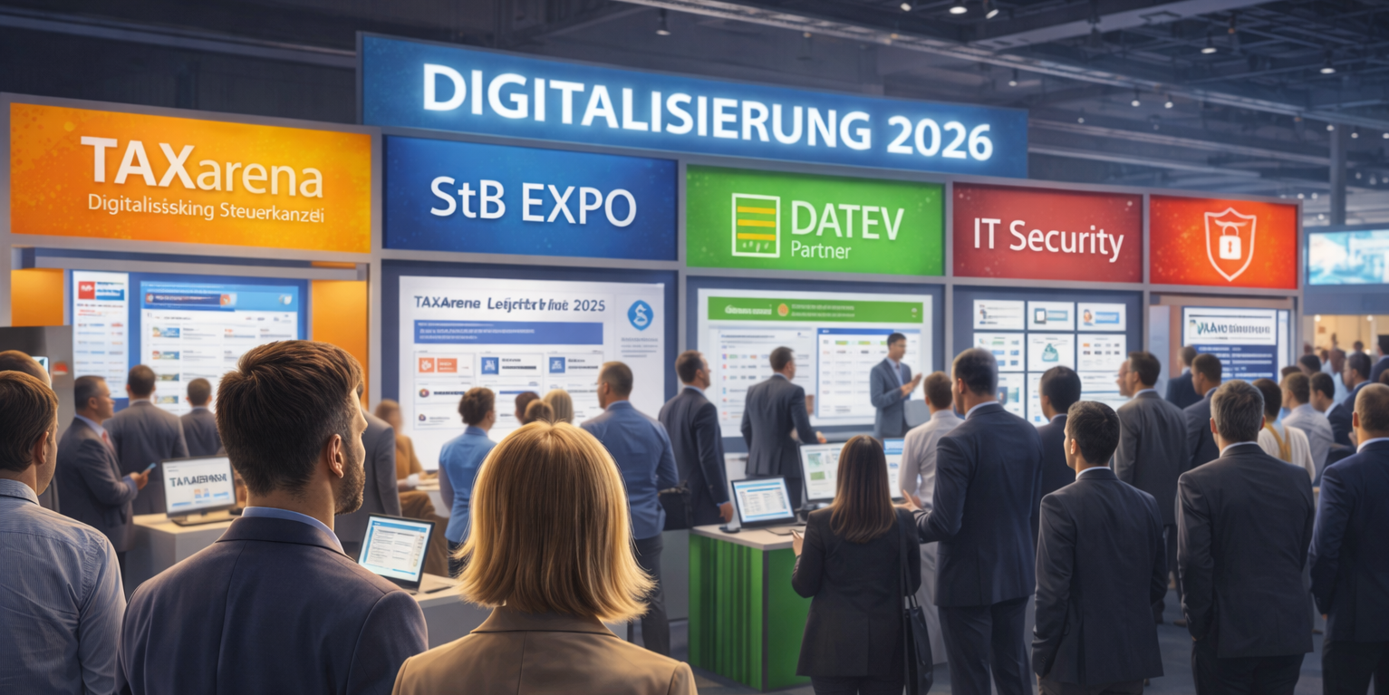 Die TAXarena ist stark auf Steuerkanzleien ausgerichtet und stellt Lösungen rund um Digitalisierung und Prozessverbesserung in den Mittelpunkt. 2026 findet sie in acht Städten statt: Leipzig, Hannover, Köln, Mainz, München, Hamburg, Stuttgart und Berlin.